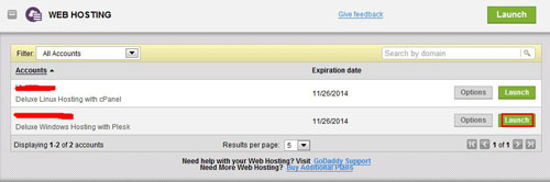 1.同样登录到GoDaddy账户,然后点击“Launch”按钮进入Plesk控制面板。