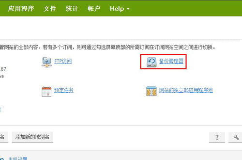2.进入Plesk控制面板后,我们点击“备份管理器”。