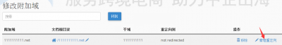 下图是点击返回进入到的附加域列表,这里我们还要操作一次,就是所谓的301重定向,点击后面的“管理重定向”开始把不带www的域名重定向到带www的域名,这是非常重要的一步操作。