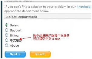 如果要提供中文服务,就选择中文服务这个选项,其他的都是英文,选择后点击Next按钮然后填写你的问题即可。