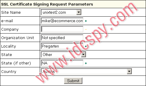 •将需要的信息填写完整后,点击Submit(提交)按钮。这个数据将被用来生成证书。如果没有明确的目的,请不要更改数据。