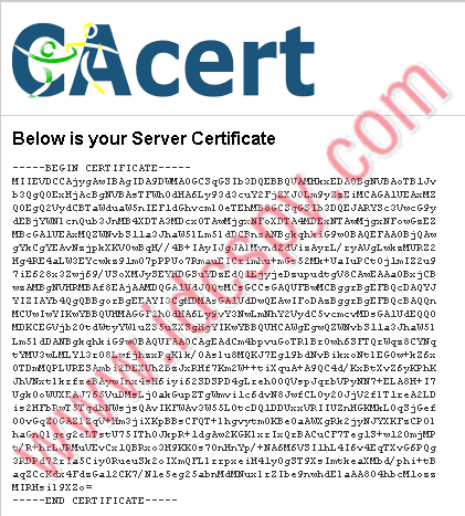 本例中的证书只有一个,以前生成的证书请求通常都是这种情况。一些供应商也可能给你多个密钥,如Go Daddy和Verisign。