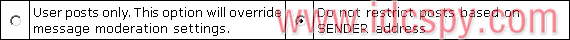 在这里你可以禁止订阅用户向主列表发送邮件,也就是说他们只能接收管理员发送的邮件。一般在发布公告或通知等不须收件人做出回应的邮件的时候选用此功能。