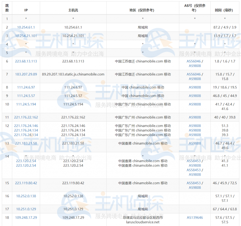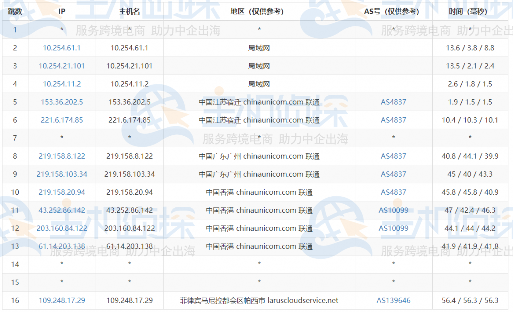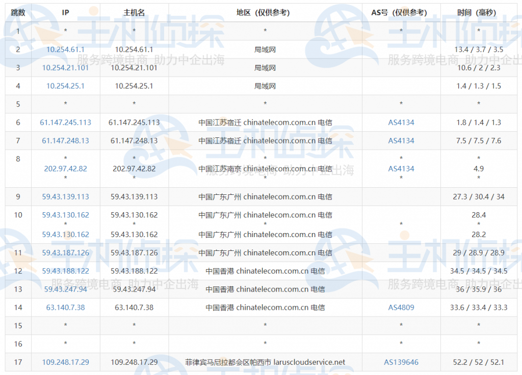 1 109.248.17.254 1.35 ms AS139646 Philippines, Metro Manila, Pasig, laruscloudservice.net