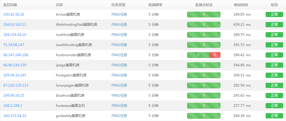 RTT响应时间和在线可用率分别展示了主机的速度和稳定性能,通过对这两种数据类型的汇总与分析可以直观地了解到虚拟主机的综合性能。这些监测数据对国内用户选择合适的虚拟主机具有很好的参考价值。