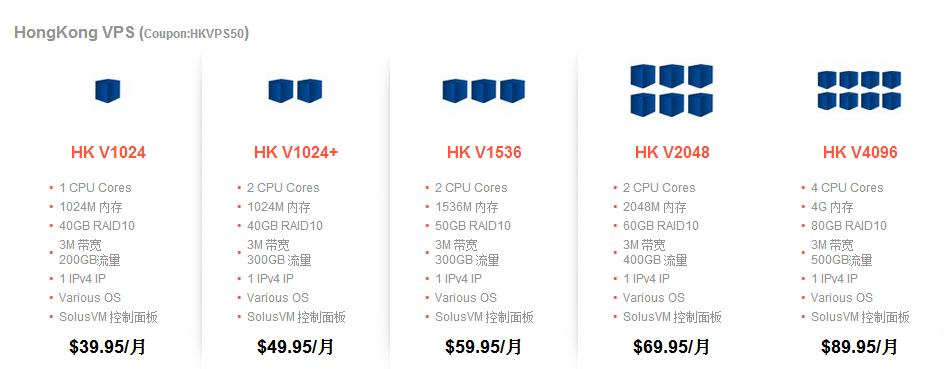 据悉,RAKsmart此次推出的香港VPS方案分别为HK V2014、HK V2014+、HK V1536、HK V2048和HK V4096,主机方案对应的价格和配置依次增加。以HK V1536方案为例,提供1536M内存,50GB RAID 10硬盘空间,3M带宽,300GB流量,1个IP地址等配置,原价为59.95美元/月。