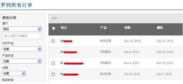 1、进入后台控制面板,在“管理订单”-“罗列/搜索订单”中选择对应域名产品,具体如下图所示: