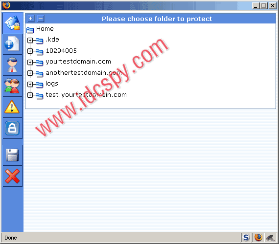 •在顶部的导航菜单中选择保护按钮,会弹出一个新窗口,然后你可以选择你要进行密码保护的目录。