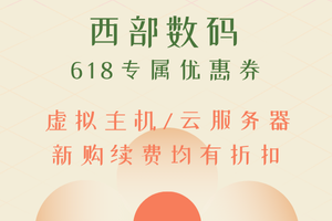 西部数码六月年中大促 云服务器低至58元/月 全能型虚拟主机首年仅98元 .com/.cn域名0元注册