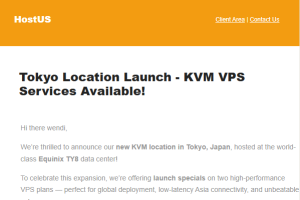 HostUS日本KVM VPS新品上线 1Gbps/NVMe硬盘/IPv4&IPv6支持