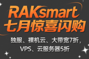 RAKsmart七月闪购活动火热开启!独服、裸机云、大带宽产品全场7折,VPS与云服务器更是低至5折,其中美国…