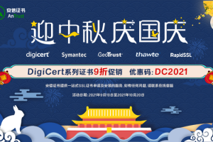浓情中秋皓月明,丹桂飘香迎国庆。为了庆祝中秋国庆的到来,回馈新老客户,安信SSL证书推出全DigiCert系列…